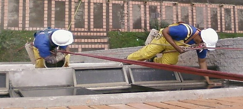 Cuerda fija por ambos extremos a un punto elevado, en cuyo centro se sienta una persona, sirve para hacer trabajos en las alturas de albañilería, pintura, limpieza de vidrios, etc.